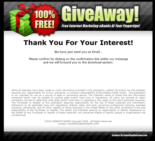 Again this part of the process is very often overlooked because most marketers simply send their PDF report or zip archive straight through to their prospect. You will now be able use your auto responder to send your prospects to a full download page so they feel like they've been looked after!