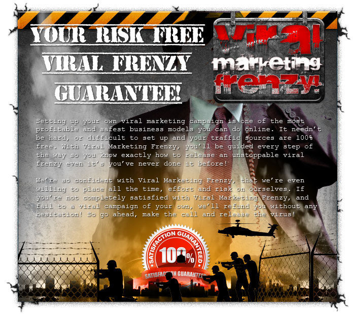 Well now you can. With Viral Marketing Frenzy, you'll learn everything you need to know to get started building a viral campaign that will quickly outpace even the most extensive advertising budget, at a fraction of the cost. Do yourself - and your business - a favor and grab a copy today. If you find it's not everything I've promised and more, you'll be glad to know I offer a...